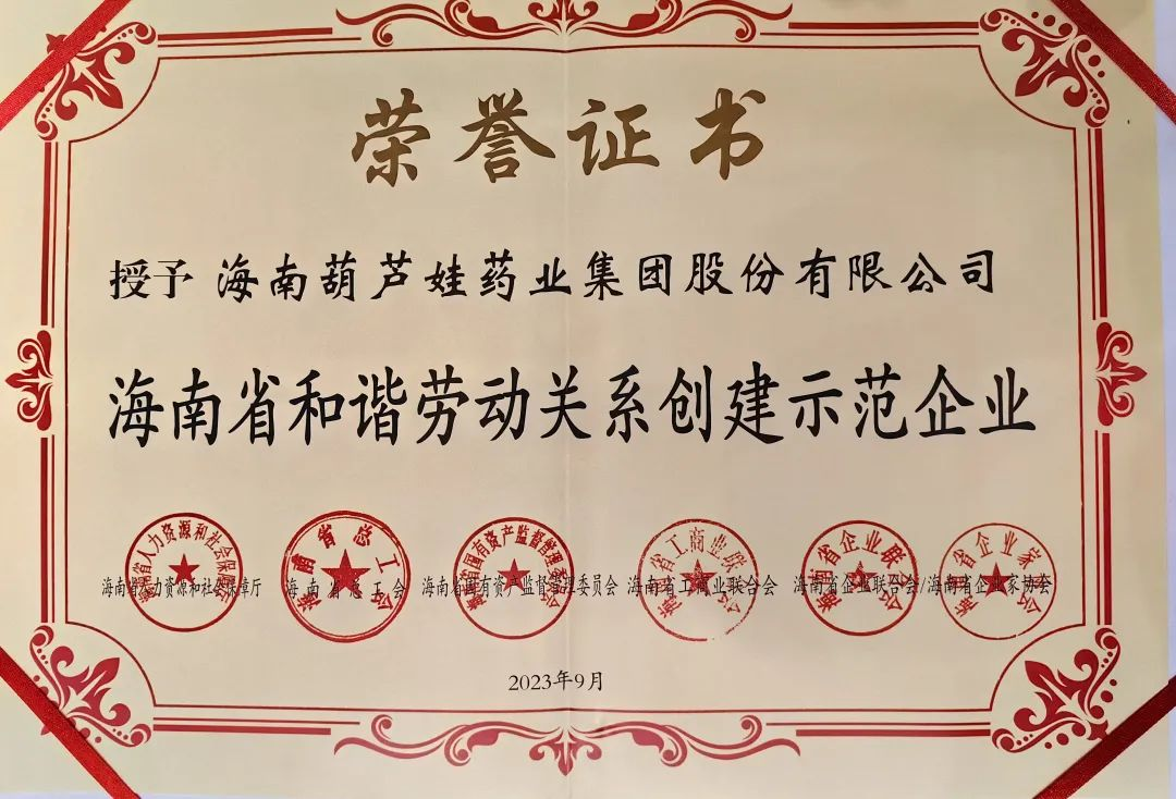 天美娱乐药业集团获评“海南省和谐劳动关系创建示范企业”