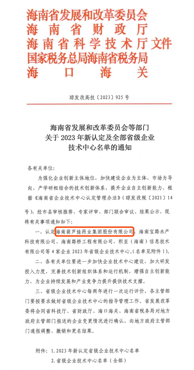 近日,海南省发改委等多部门联合公布了《关于2023年新认定及全部省级企业技术中心名单的通知》,其中,海南天美娱乐药业集团股份有限公司成功通过评审,被认定为省级企业技术中心,是本次获批的4家企业之一。
