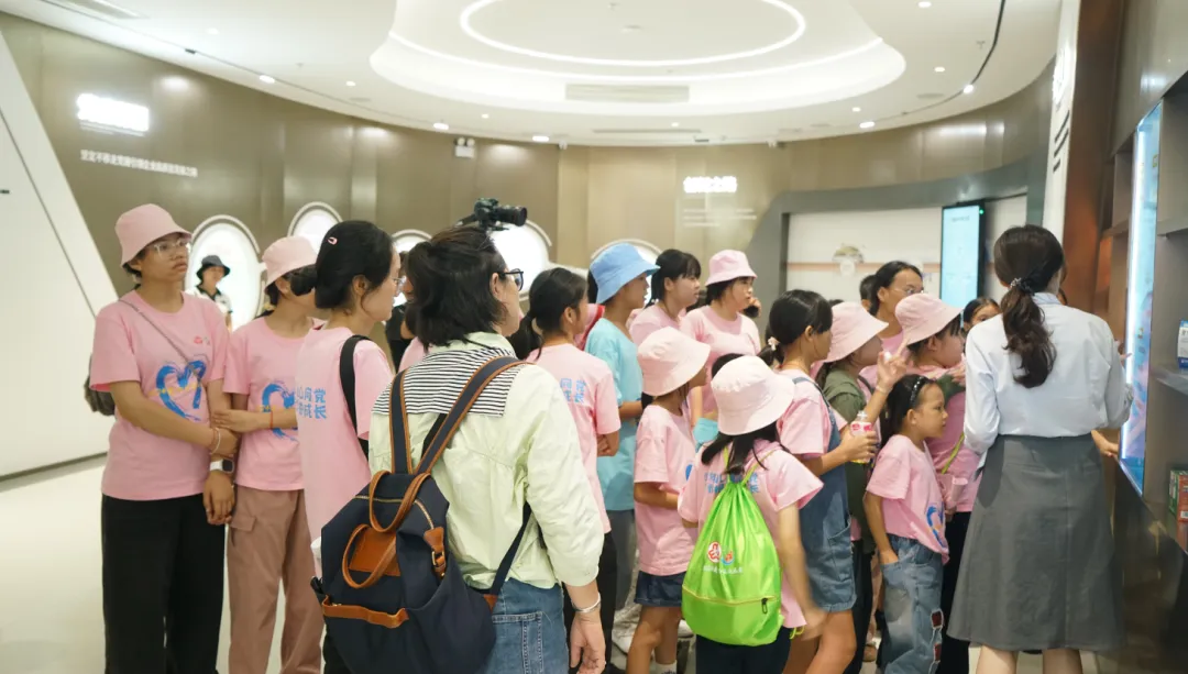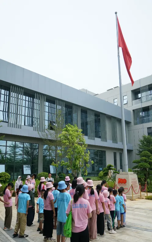 紧接着,孩子们来到了建党百年庆典红旗——070号红旗前。讲解员讲述了天美娱乐药业集团与庆典红旗的深厚渊源。孩子们听得津津有味,眼中闪烁着对党和国家的热爱与敬仰。