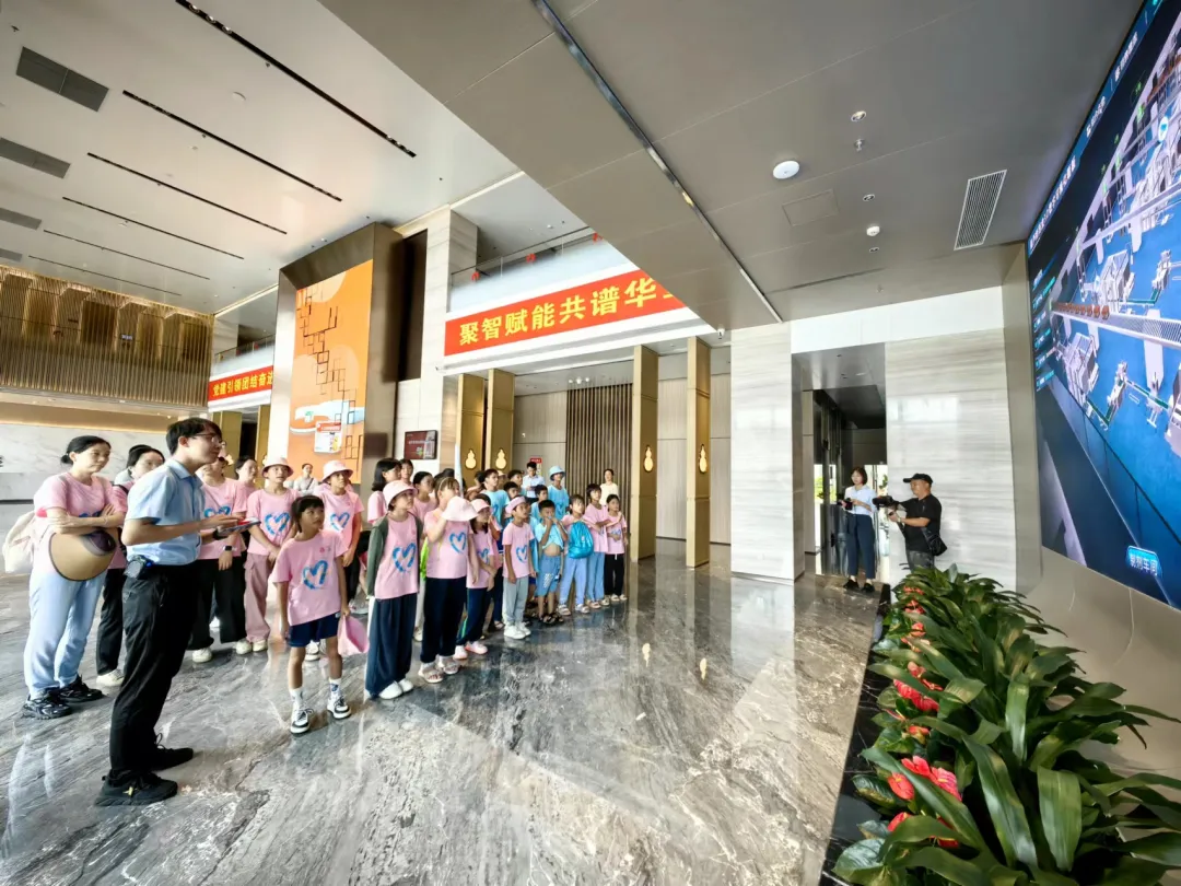 活动一开始,孩子们便迫不及待地踏入了天美娱乐药业集团的大厅。3D数字化看板上的生动画面,让孩子们仿佛置身于一个充满科技与创新的现代制药工厂。他们瞪大眼睛,好奇地观察着每一条生产线、每一台设备,听着讲解员介绍天美娱乐药业的儿药发展历程。